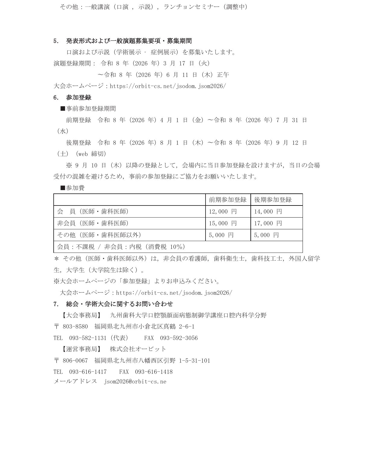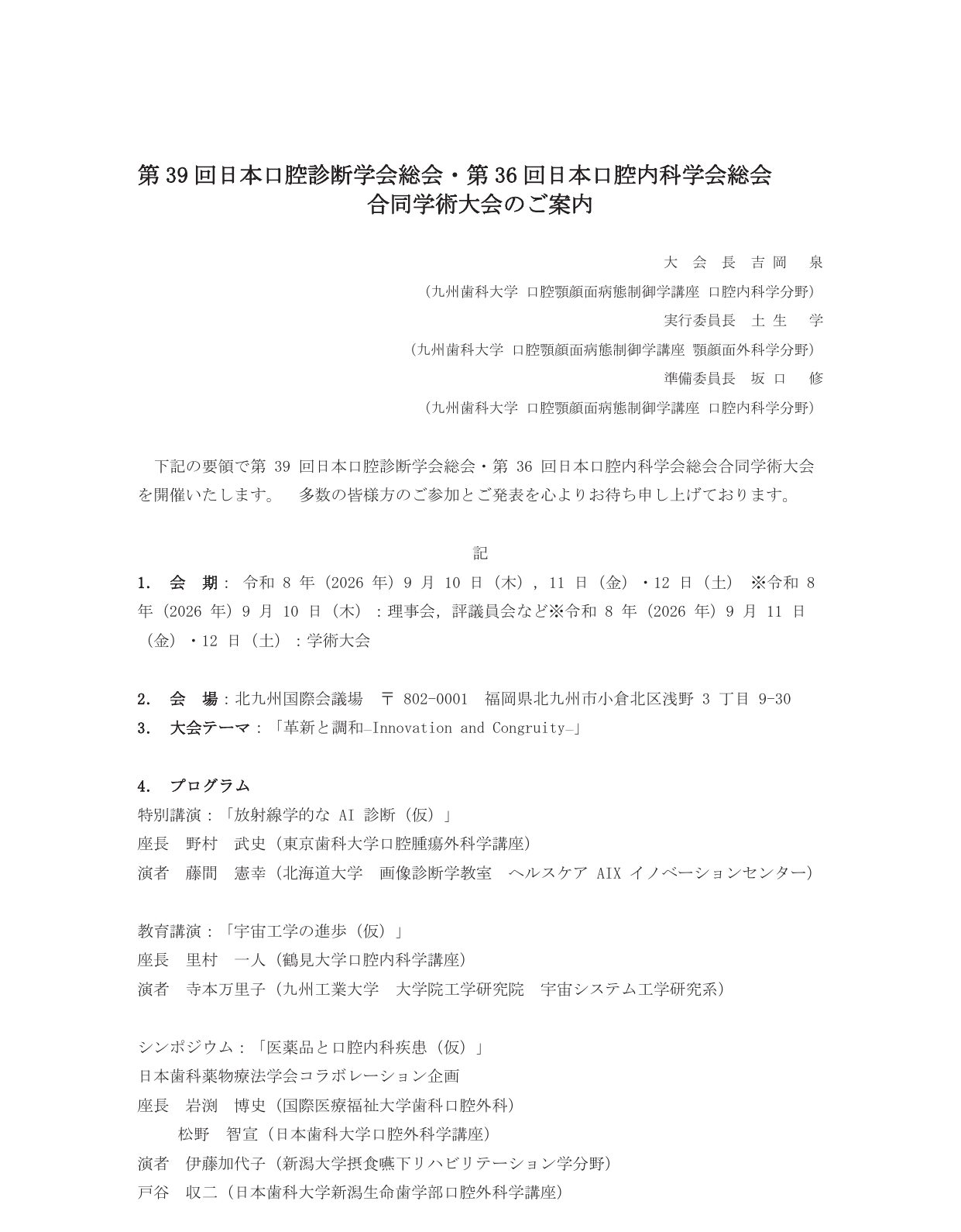 第38回日本口腔診断学会・第35回日本口腔内科学会 合同学術集会のご案内